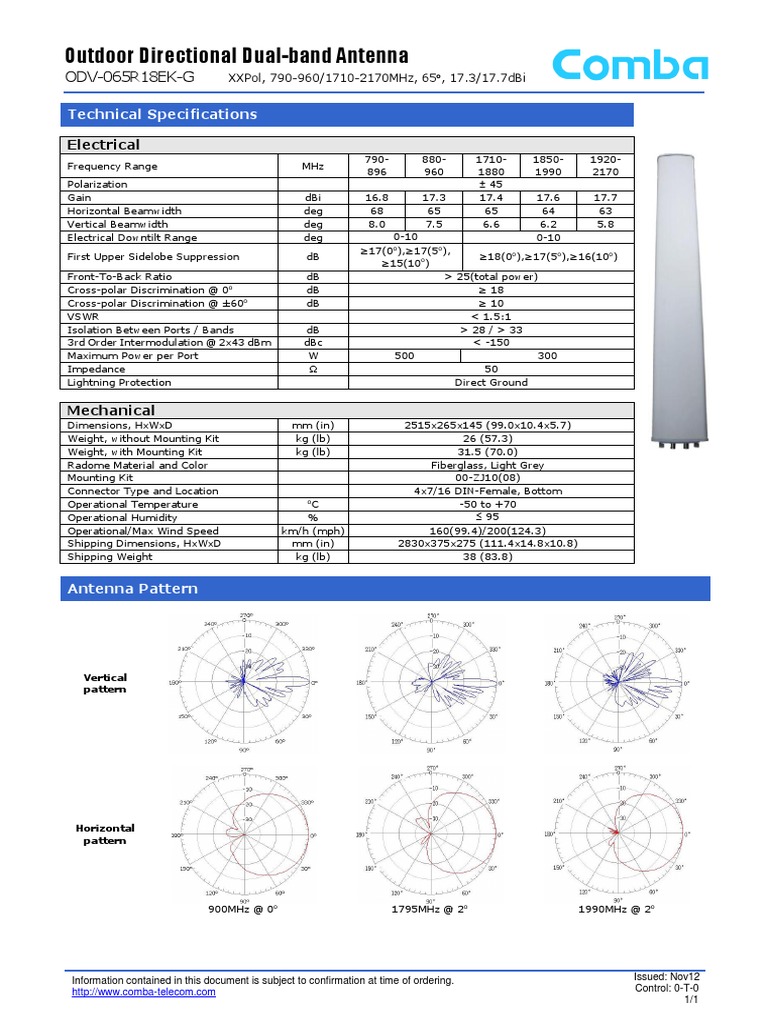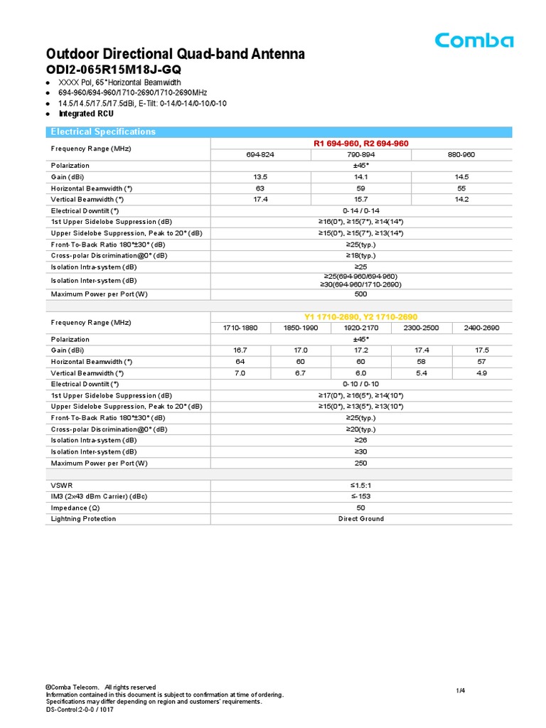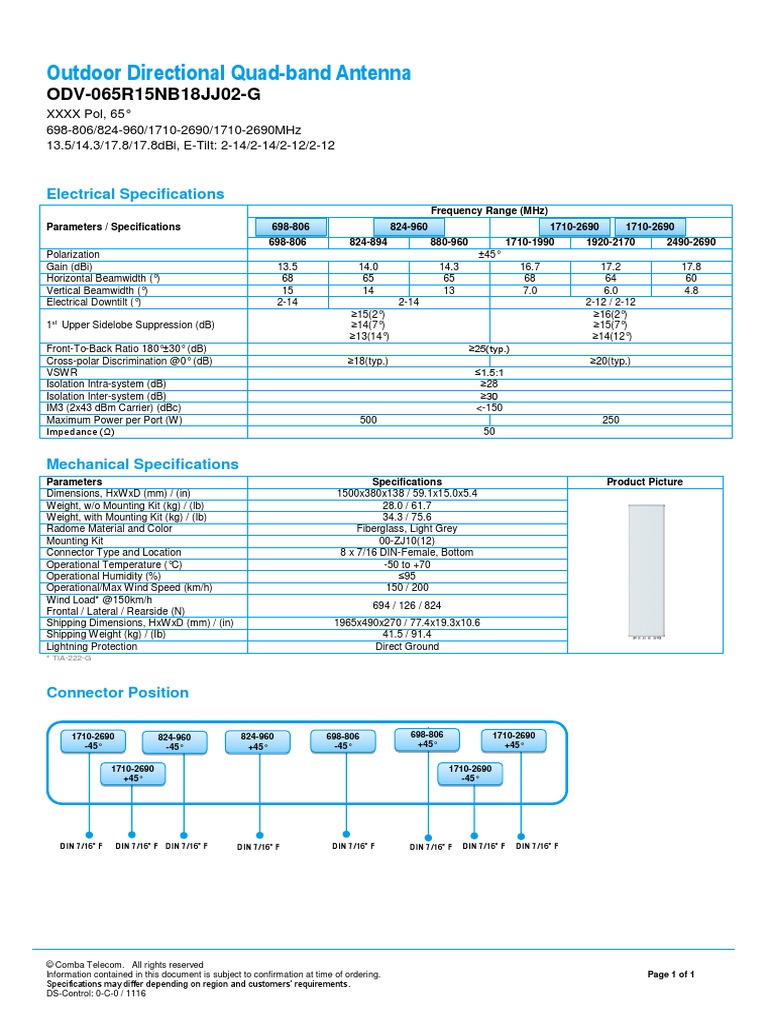 Antena Comba La 22 Odv 065r18ek G Ds 0 T 0 2 5 Mts Db Datasheet